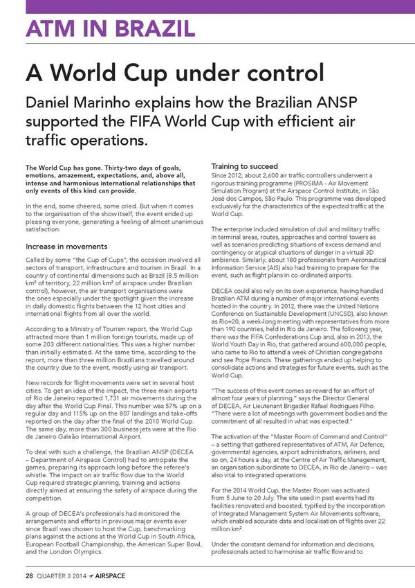 The Department of Airspace Control is an organization of the Brazilian State, subordinate to the Ministry of Defense and to the Brazilian Air Force, responsible for the strategic and systemic control of the country’s airspace.